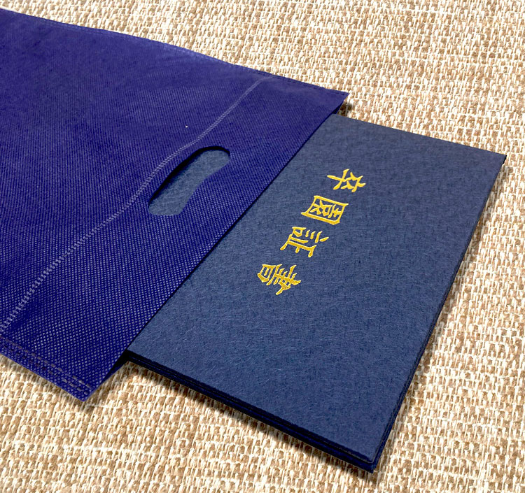 証書ホルダーだけでなく、賞状印刷、持ち帰り用手提げ袋、収納箱、化粧( 貼り) 箱までもセットで対応可能。複数業者とのやり取りが不要なので、ご担当者様から『まとめて頼めて助かる』とご好評をいただいています。